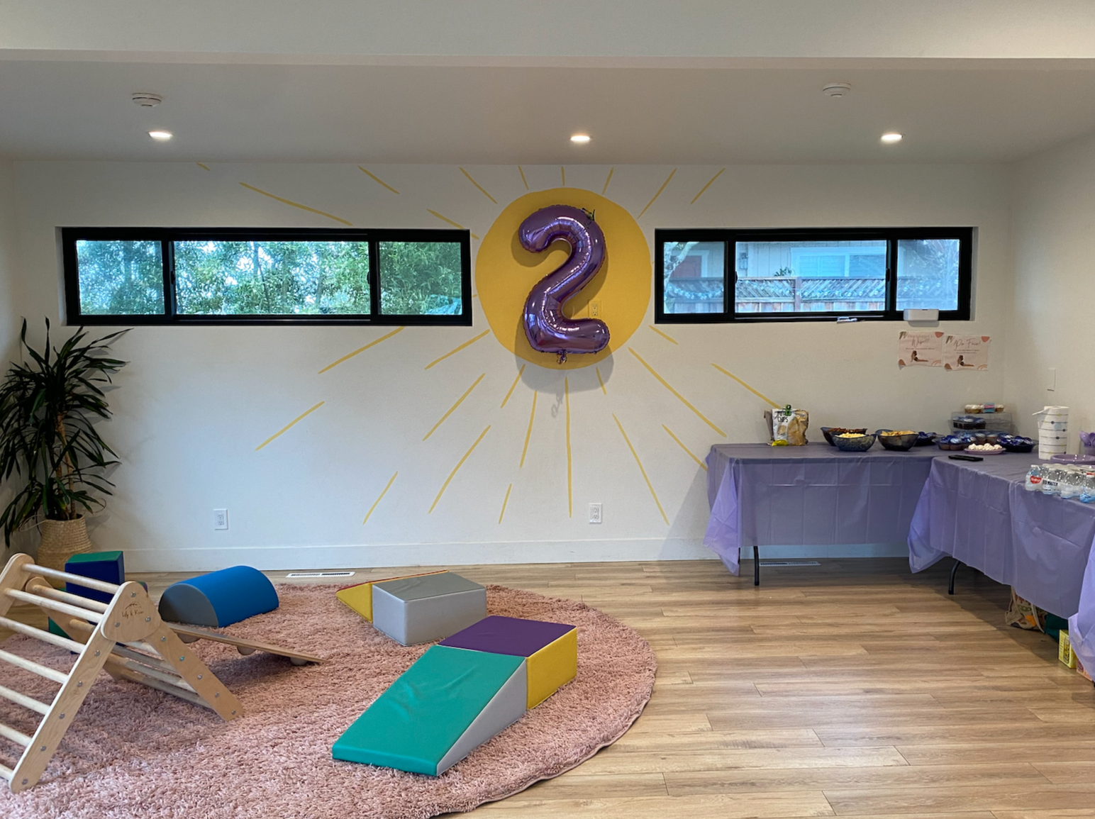 The Sun Room rental is perfect for children’s birthday parties. It includes use of the Sun Room, the toddler play room, and the adjoining back deck. There is an accessible bathroom, as well as prep sink and refrigerator access.